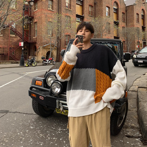 男潮牌宽松韩版针织衫毛衣2020流行新款超火学生情...
