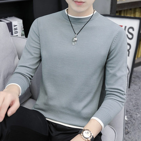 圆领针织毛衣男2020年新款秋冬季韩版潮流个性假两...