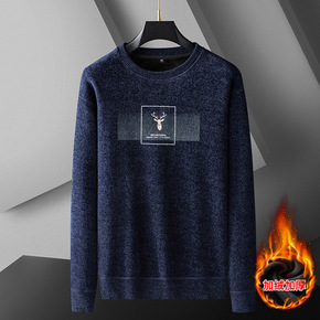 加绒加厚毛衣男冬厚胖子加肥加大码圆领刺绣针织衫线衣...