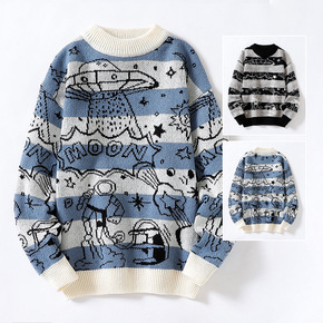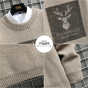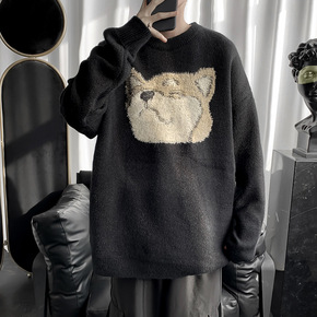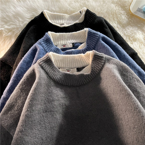 复古毛衣男冬季加厚圆领套头ins潮流针织衫秋冬宽松...