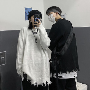 毛线针织衫男国潮BF秋冬新款韩版ins复古破洞宽松...