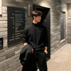 2022新款春秋季黑色半高领毛衣男士打底衫圆领毛衫...
