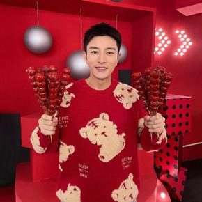 贾乃亮同款老虎新年红色圆领宽松毛衣男女情侣本命年提...