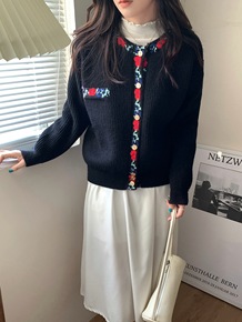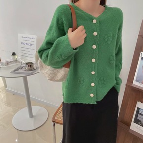 毛衣女百搭外穿宽松针织开衫新款春秋慵懒风日系樱桃提...