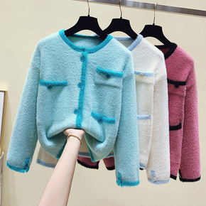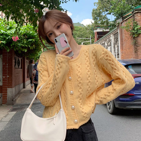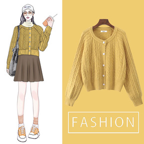 2021秋冬新款小香风纯色麻花毛衣女开衫韩版宽松百...