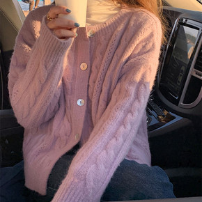 im向自制 麻花毛衣开衫女2021秋季新款宽松保暖...