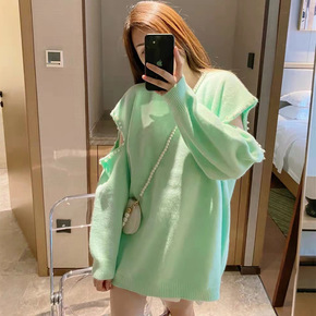 网红毛衣女宽松外穿2021春秋季新款慵懒风百搭中长...