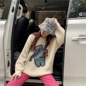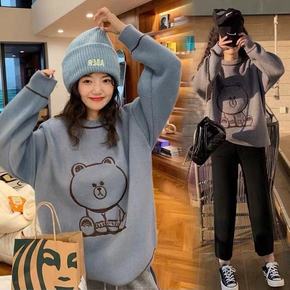 大码女装胖mm加厚慵懒风小熊外穿毛衣2021秋冬新...