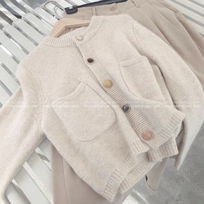2021年秋冬新款米色宽松日系毛衣女高级感精致纽扣...