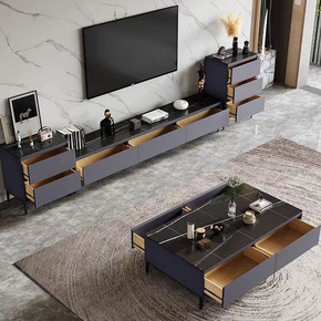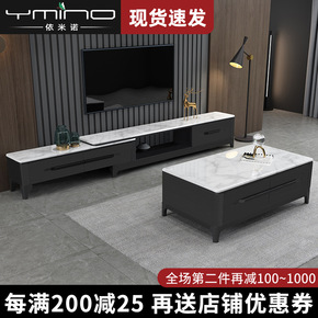 岩板电视柜茶几组合伸缩轻奢小户型意式客厅墙大理石现...