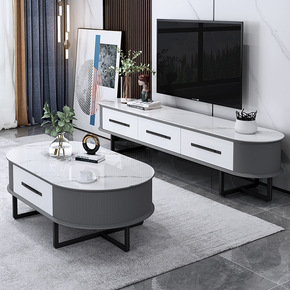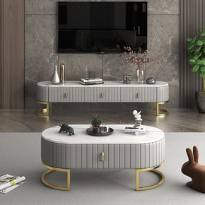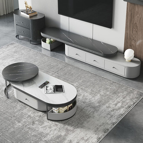 意式极简进口岩板电视柜茶几组合现代轻奢设计大理石地...