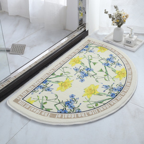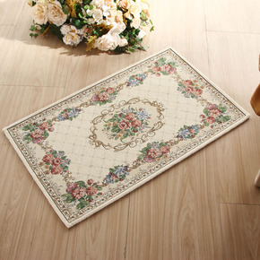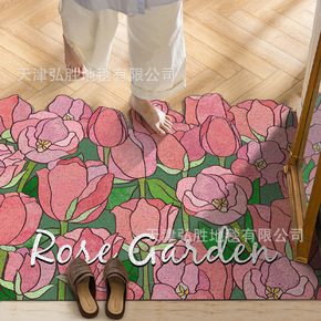北欧田园风玫瑰花园入户地垫可裁剪丝圈脚垫家用玄关防...