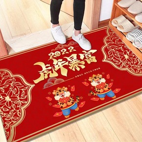 红色门垫丝圈地垫脚垫刮泥蹭脚垫居家新中式门口入户地...