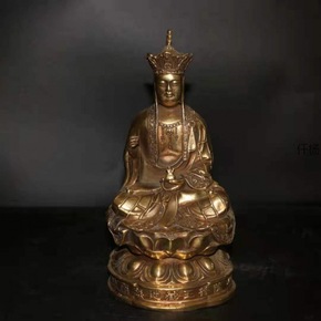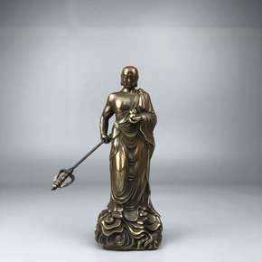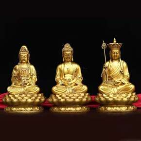 古玩收藏黄铜三面地藏王佛像摆件家居摆设人物...