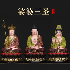 南海观音菩萨佛像摆件树脂释迦牟尼佛地藏王娑婆三圣弥...