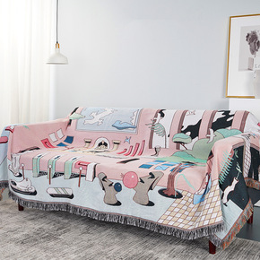 北欧简约新款ins大波浪图案沙发毯沙发巾民宿样板间...