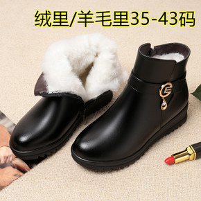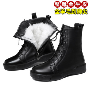 全牛皮全羊毛马丁靴女单靴平底秋冬新款女棉靴子低跟大...