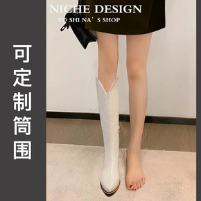 白色西部牛仔靴子女中长筒2021新款显瘦网红粗腿大...