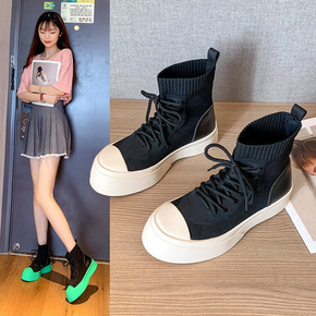 靴子女2021夏季新款韩版厚底飞织独立站ins网红...