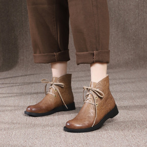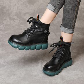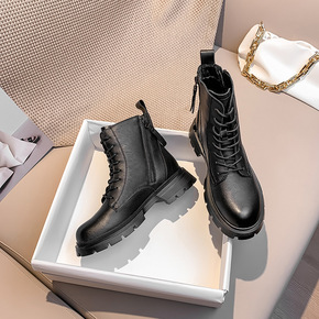 新款真皮牛皮复古系带百搭厚底舒适高帮马丁靴女202...
