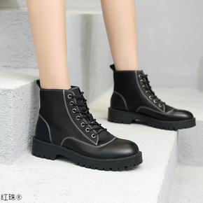 英伦风马丁靴女2021新款厚底薄款ins潮系带单靴...