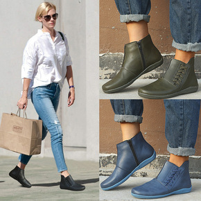 独立站大码短筒马丁靴女2021秋冬欧美平底纯色棉靴...