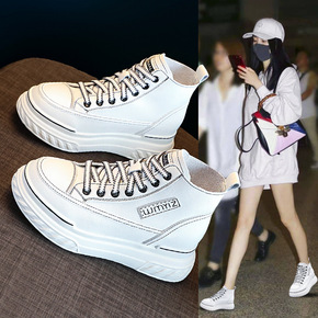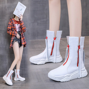 韩国马丁靴2021新款女春秋款厚底瘦瘦单靴内增高八...