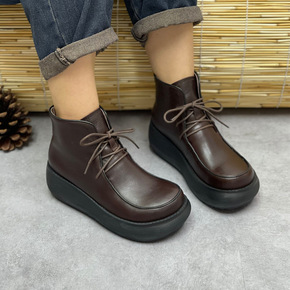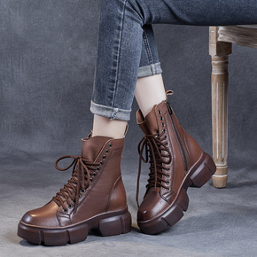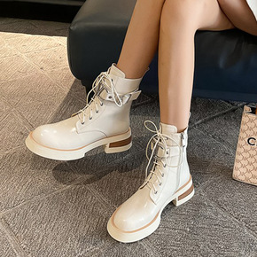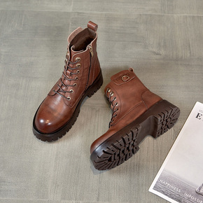 JW2021秋冬新款棉靴厚底系带骑士靴真皮复古马丁...