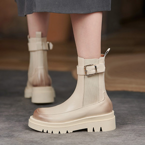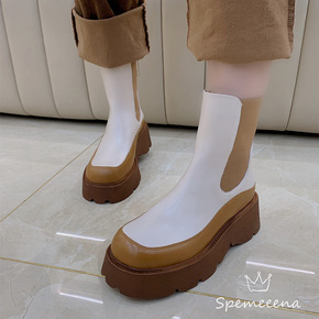 马丁靴女春秋单靴2021新款英伦风厚底切尔西靴增高...