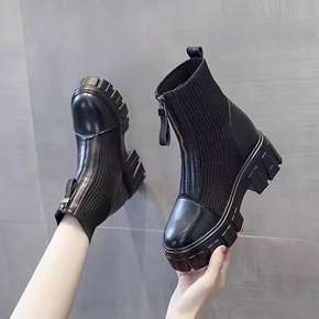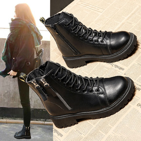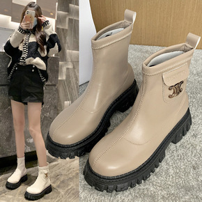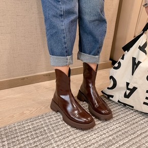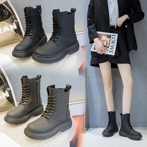 潮流时短靴女春秋单靴2021新款厚底瘦瘦英伦风马丁...