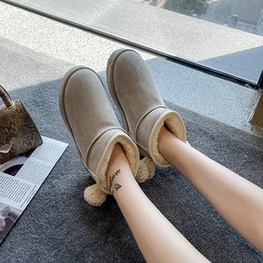 雪地靴女2021年秋冬季韩版新款保暖加厚棉鞋圆头平...