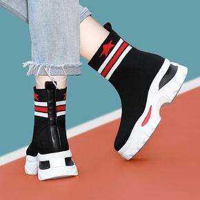 水之彩女高帮弹力袜子鞋2019秋冬新款瘦瘦靴学生休...