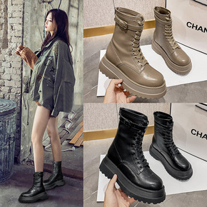 马丁靴女2021网红英伦风厚底中筒靴复古工装短靴单...