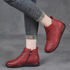 代发2021冬季新款保暖棉靴低跟软底中年女靴加绒棉...