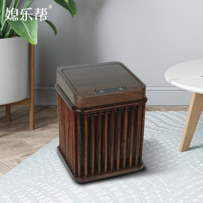 中式复古创意实木质垃圾桶家用客厅卧室带盖智能垃圾桶...