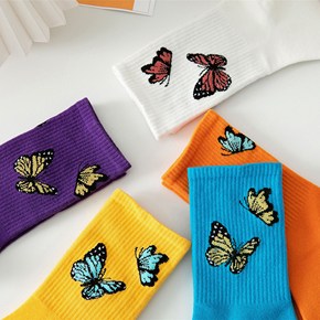 蝴蝶袜子女ins潮网红超火纯棉中筒袜个性堆堆袜搭配...