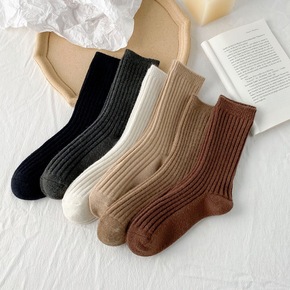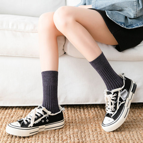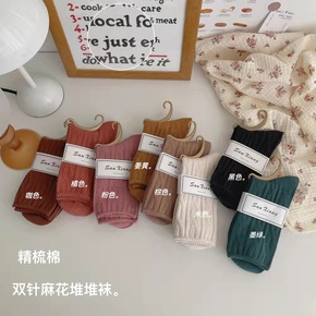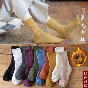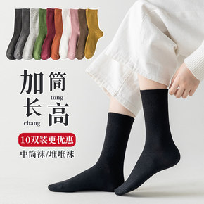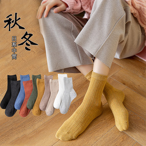 纯色秋冬季女袜日系 小腿袜 长筒堆堆袜子学院风精梳...