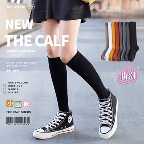 日系小腿袜纯色全棉 时尚瘦腿堆堆袜学生黑色长筒袜及...