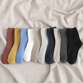 袜子女中筒黑色秋季纯色ins潮百搭韩国长薄款纯棉春...
