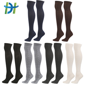 新款日系百搭过膝袜麻花针织长筒袜女时尚竖条堆堆高筒...