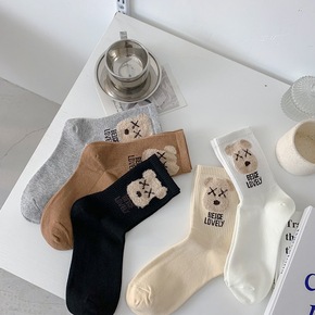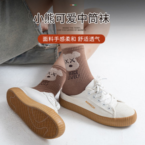 袜子女秋冬新款棉袜日系卡通可爱小熊中筒袜百搭潮流女...