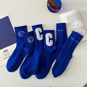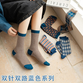 面料名称:棉 产品类别:普通休闲袜 双针袜:否:单针袜 货号:蓝色女袜 无骨缝制:否:机器缝...