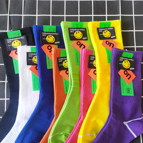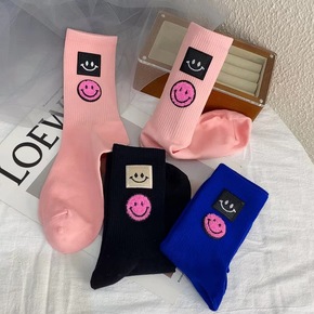 566气质粉色毛巾圈可爱笑脸贴布中筒袜堆堆袜外出学...