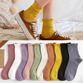 全棉糖果色木耳边船袜 时尚甜美短袜子 厂家直销 1...