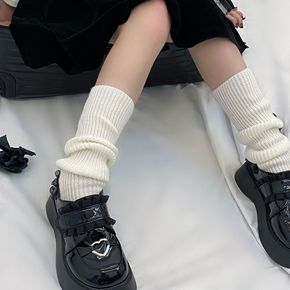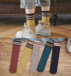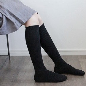 秋冬日系竖条小腿袜纯棉 女膝下袜子 堆堆制服中筒袜...