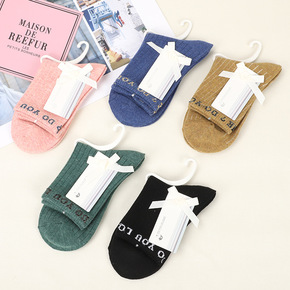 秋冬新品袜子 日系中筒金丝字母女袜 女士卷边堆堆袜...