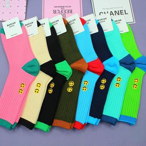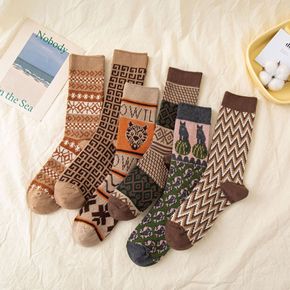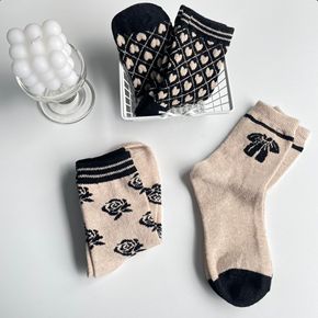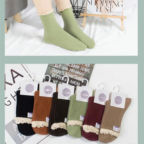 秋冬袜子双路双针高品质日系复古卡通中筒棉袜卡其组合...