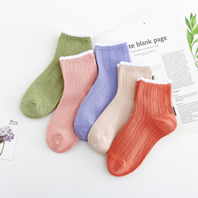 月子袜松口花边袜子女中筒袜ins潮纯棉网红产妇堆堆...