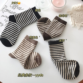 条纹袜子女中筒袜ins潮堆堆袜韩国春秋百搭日系简约...
