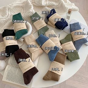 新款纯色麻花纹羊毛袜冬季保暖加厚日系学院风堆堆袜纯...